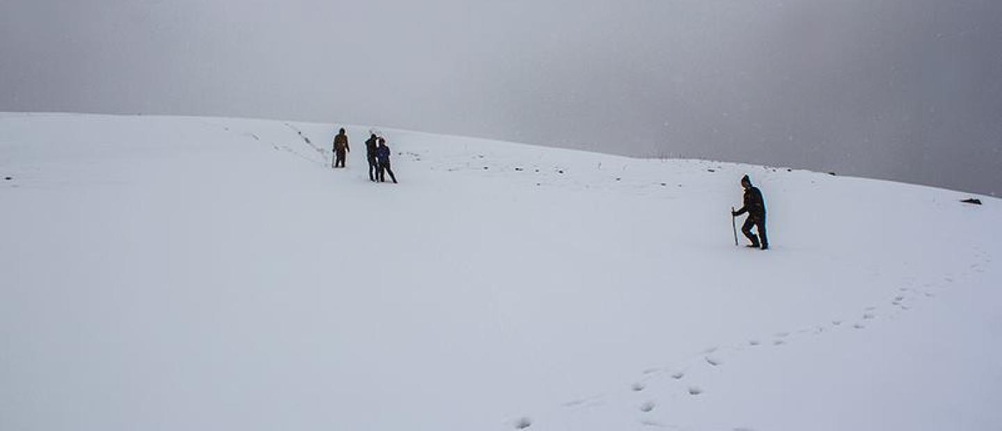 And the last point was very stiff, I was in front of the group so I created a base by hand then put my leg. So many times I went down again to climb the peak, and one by one all of my friends reached the peak to follow the trail. We finished our lunch at the top with some dry food and snacks. We could not get any views due to heavy snowfall, but we got one thing to think forward.